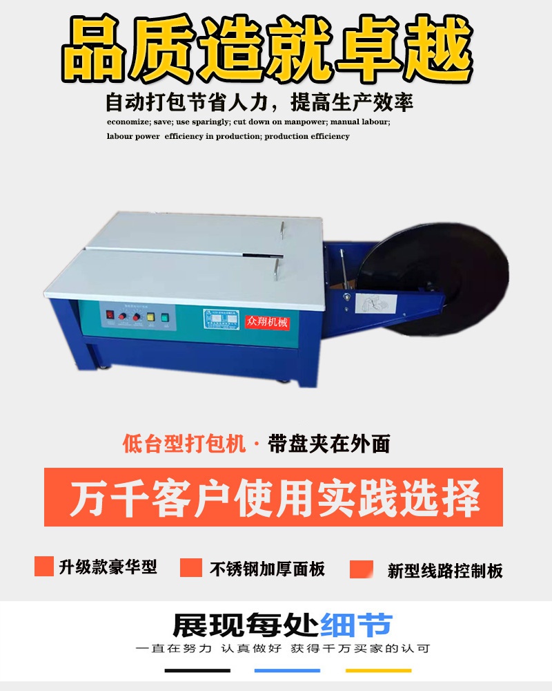 江西南昌眾翔打包機廠家,供應ZX8060型(xing)全自(zi)動打包(bao)(bao)(bao)機(ji)(ji)、KZB型(xing)系(xi)列(lie)半自(zi)動打包(bao)(bao)(bao)機(ji)(ji)、pp帶紙箱(xiang)自(zi)動捆(kun)包(bao)(bao)(bao)機(ji)(ji),全新款(kuan)單電(dian)機(ji)(ji)、雙電(dian)機(ji)(ji)系(xi)列(lie)捆(kun)包(bao)(bao)(bao)機(ji)(ji),機(ji)(ji)器(qi)性能穩(wen)定、故障率低、江西本地供應,售后(hou)服(fu)務有保障!